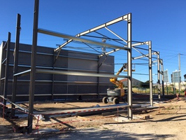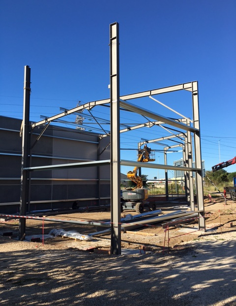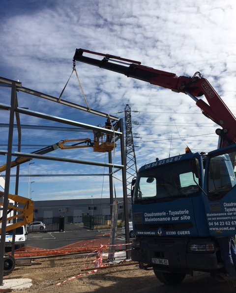 Construction d'un garage, carrosserie : structure métallique , couverture panneaux sandwichs, bardage